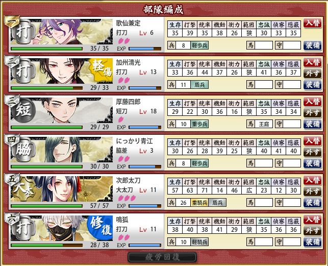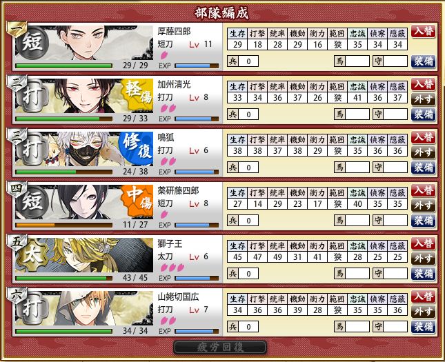 やっぱ艦娘のほうがちょう覚えやすい。刀の名前ややこしすぎィ!